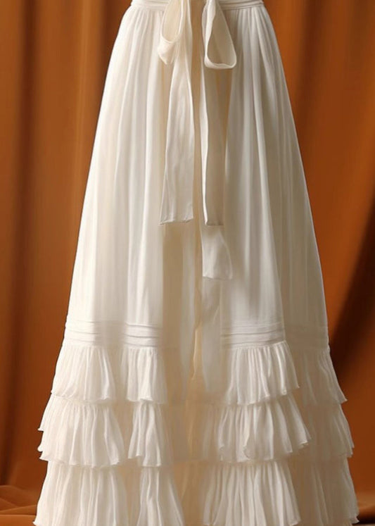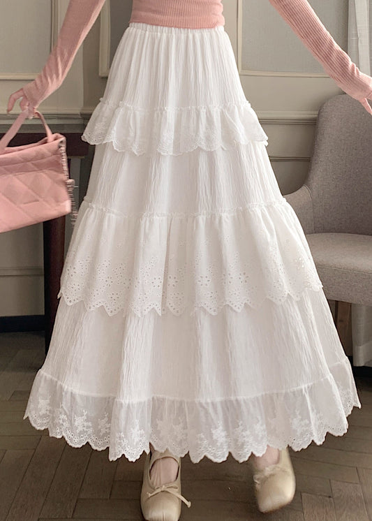 New White Ruffled Layered Patchwork Cotton Skirts Summer QQ1056