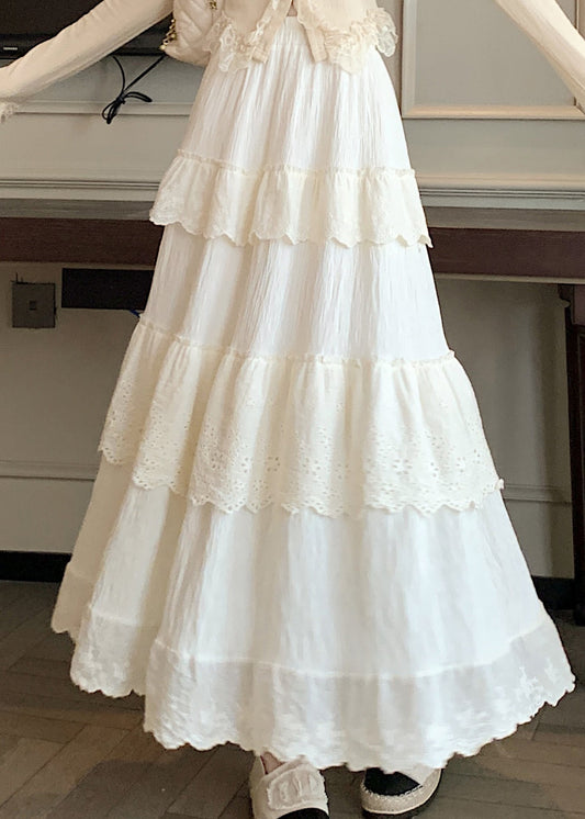 White Cotton Pleated Skirt Exra Large Hem Spring QQ1005