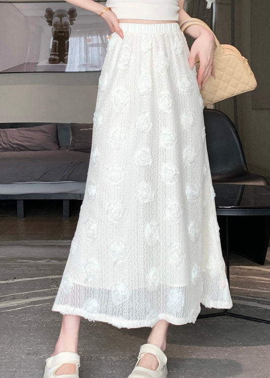Fashion Versatile White Floral Elastic Waist Cotton Skirt Spring QQ1025