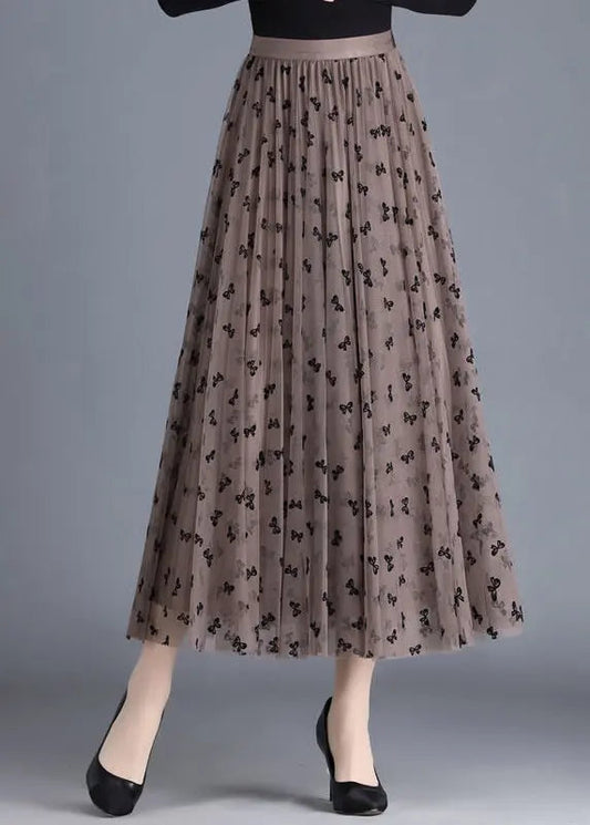 Modern Brown Butterfly Wear On Both Sides Tulle Pleated Skirts Spring HA1033