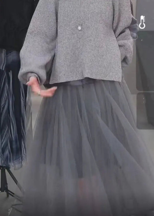 Loose Grey Solid Elastic Waist Tulle Skirts Summer AS1008