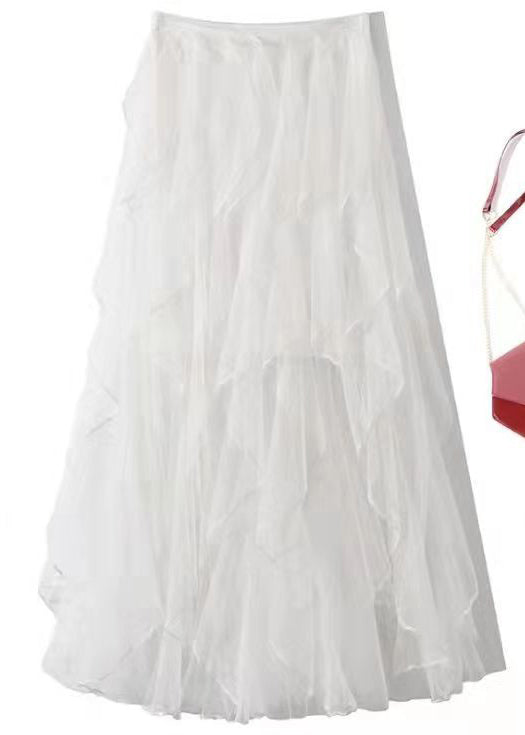 Elegant White Feathers Embroidered Elastic Waist Tulle Skirt Summer AS1073