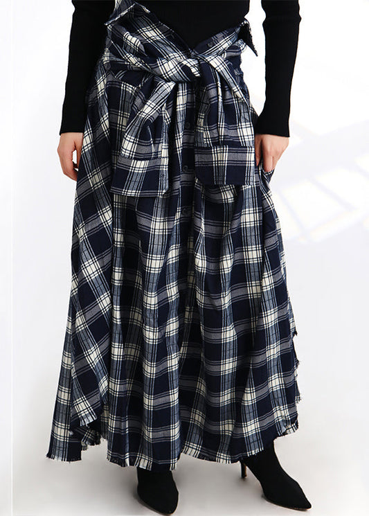French Plaid Lace Up Button Elastic Waist Cotton Skirt Spring AB1064