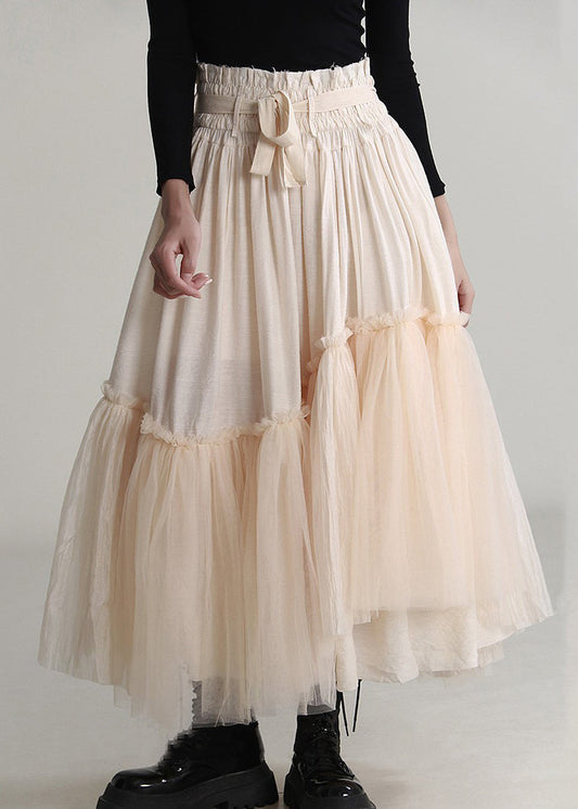 Loose Apricot Ruffled Elastic Waist Tulle Skirts Summer AB1022