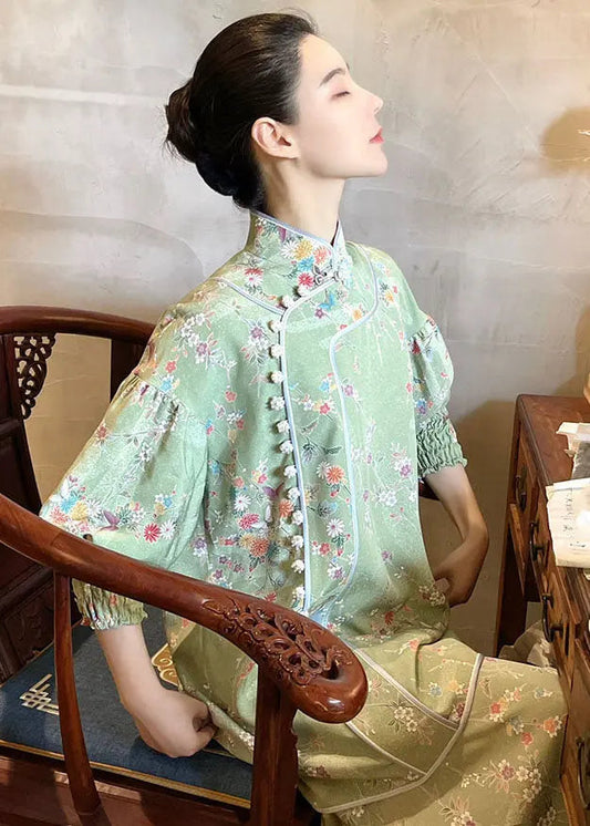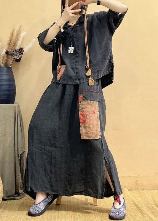 Button Silk Top And Maxi Skirts Two Pieces Set