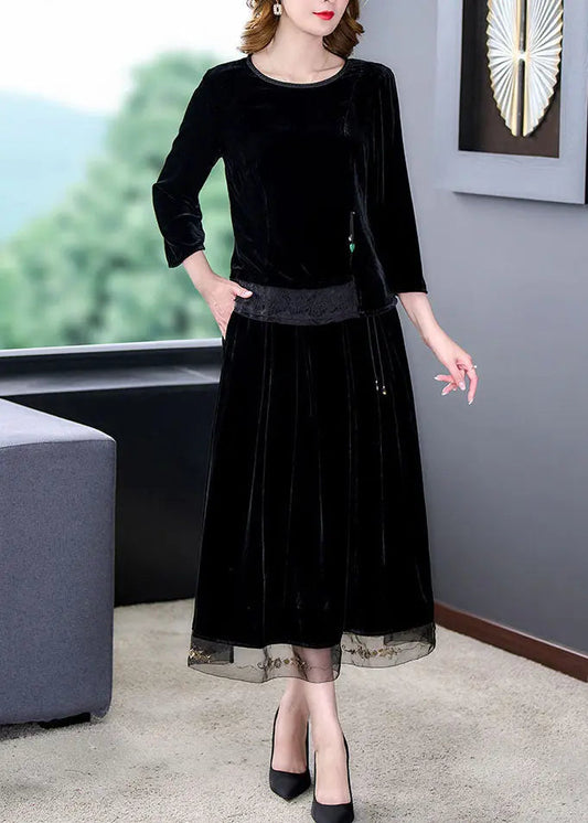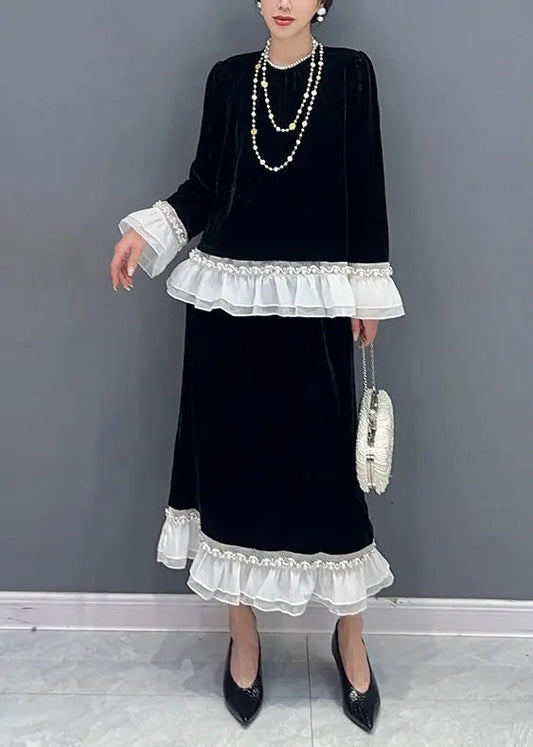 Ruffled Tops And Skirts Velour Two Pieces Set