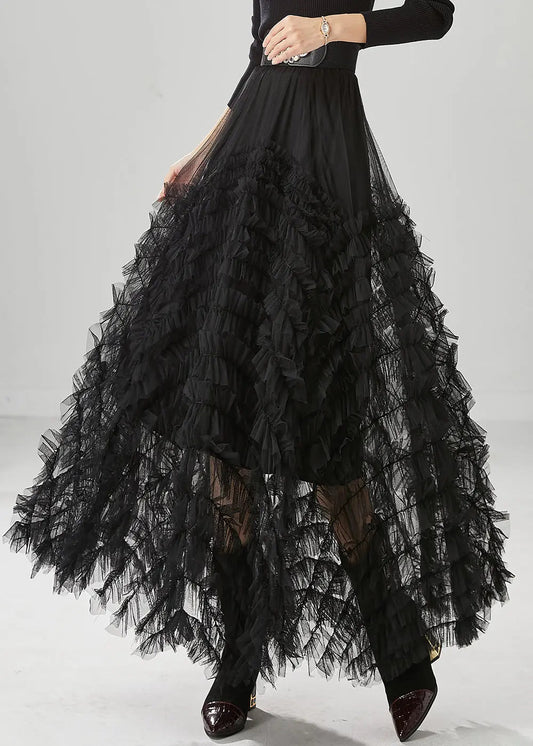 French Black Side Open High Waist Denim Skirt Fall TU029