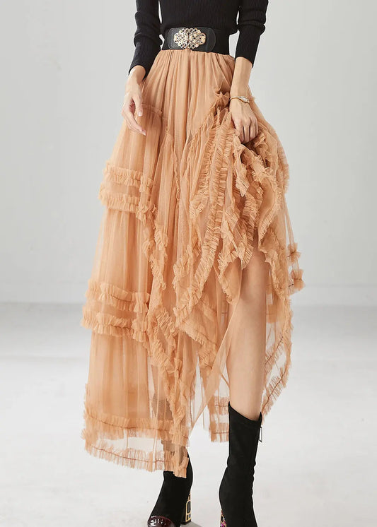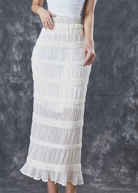 New Apricot Wrinkled Elastic Waist Silk Skirt Summer TU023
