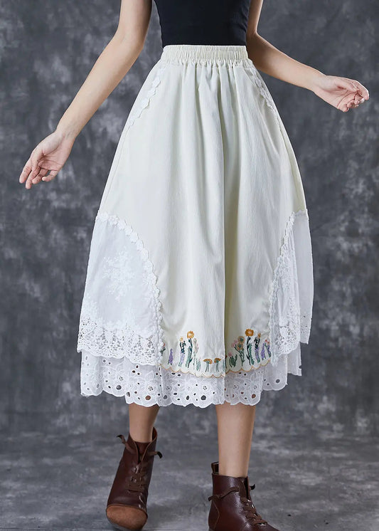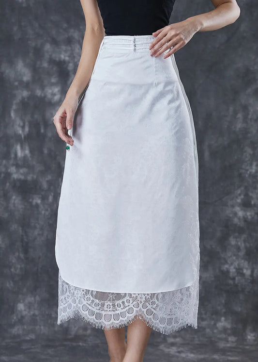 French White High Waist Pockets Patchwork Cotton Skirt Fall AH343