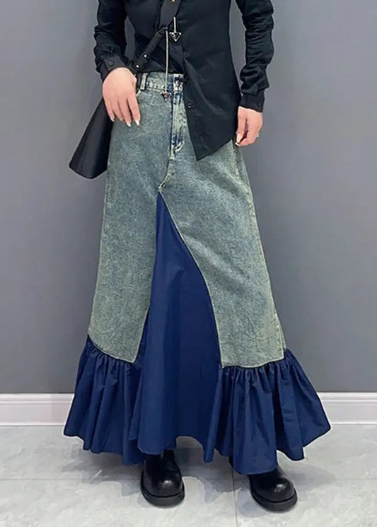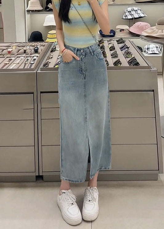 Italian Blue Side Open High Waist Denim Skirts Fall TU028