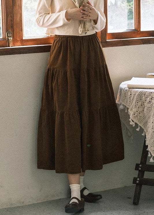 Coffee Wrinkled Pockets Patchwork Corduroy Skirts