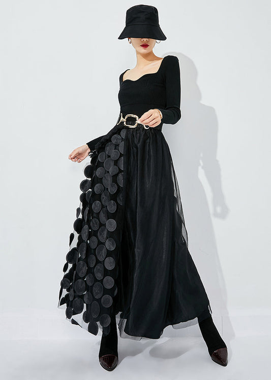 Chic Rose-Black Dot Ruffled Patchwork Dot Tulle A Line Skirts Summer LY0876