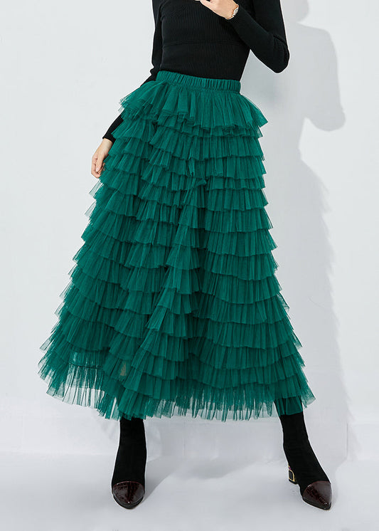 Elegant Blackish Green High Waist Layered Tulle Skirts Summer LY0858