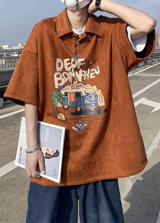 Print Shirts Vintage Summer Green Button Polo Cotton Mens