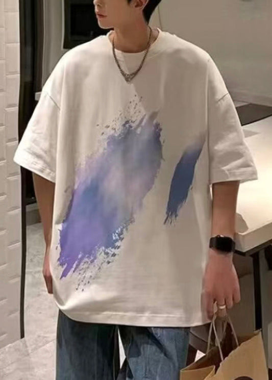 Letter Cotton Shirt Grey Summer Striped Men Art T