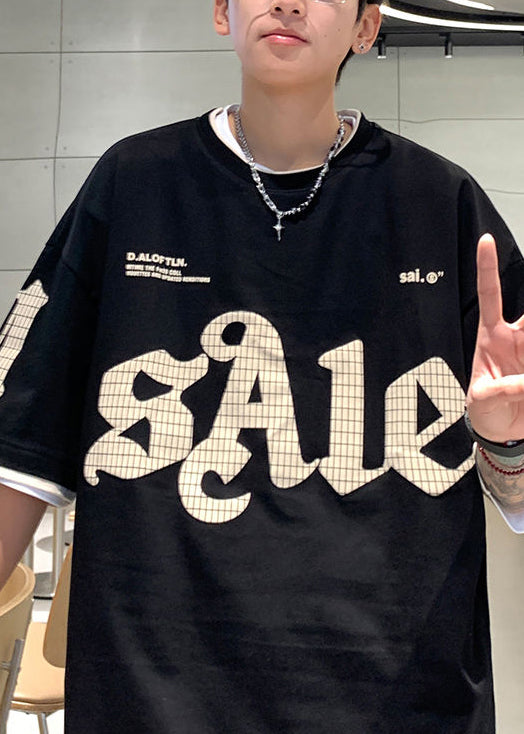 Black T Summer O Cotton Men Print Cozy Shirt French Neck