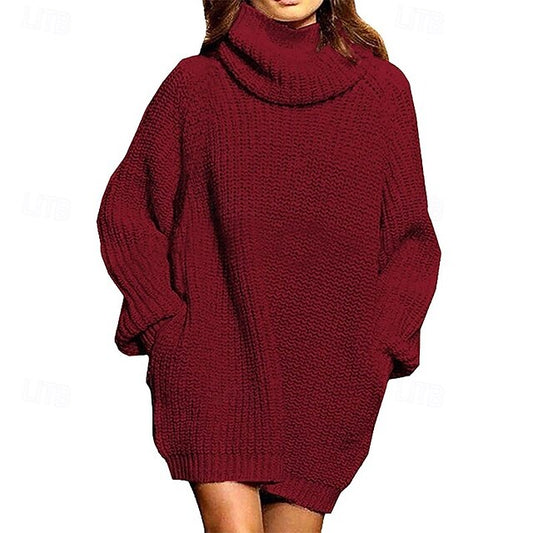 Women's Sweater Dress Casual Solid Color Turtleneck Knitted