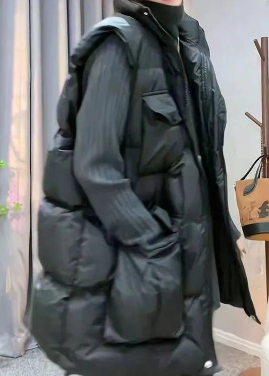 Fashion Black Hooded Patchwork Long Duck Down Vest Sleeveless TD032