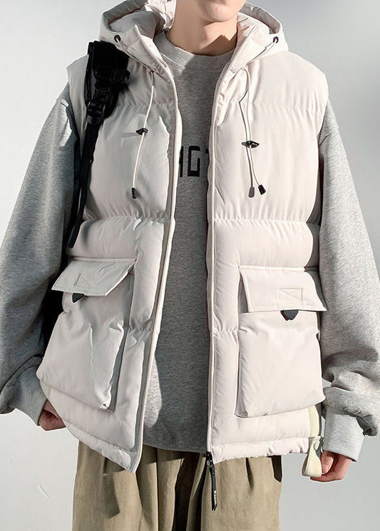 Simple White Stand Collar Zippered Cotton Filled Mens Waistcoat Sleeveless RN009