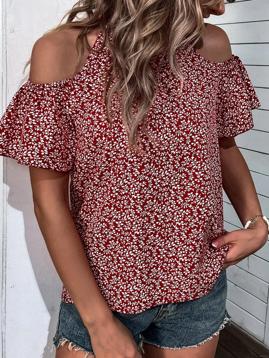 Floral Casual V Neck Embroidery T-Shirt QAF38