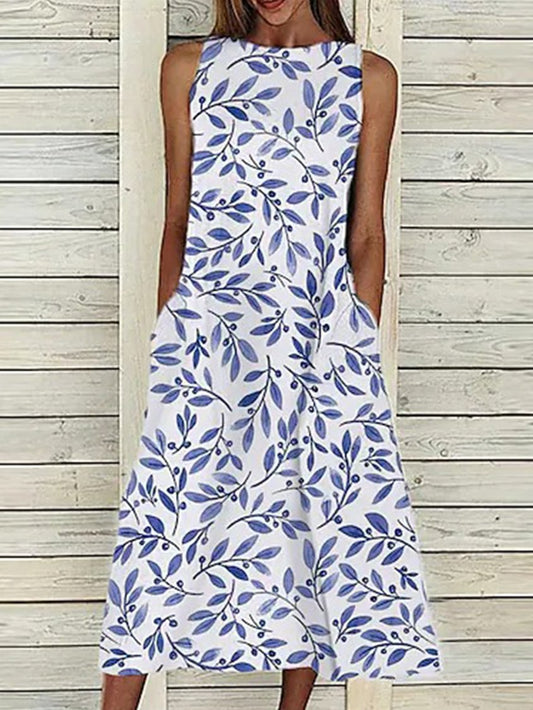 Casual Loose Crew Neck Sleeveless Dress QAH48