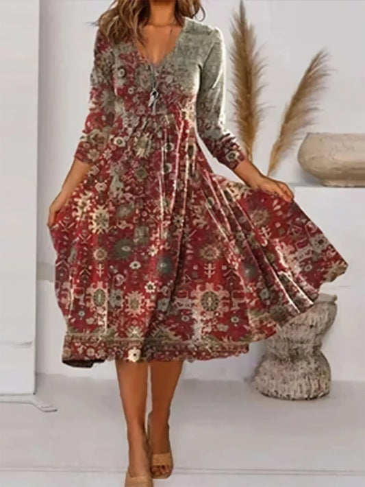Women Casual Floral Autumn Micro-Elasticity Daily Midi Best Sell H-Line Regular Dress QAH45