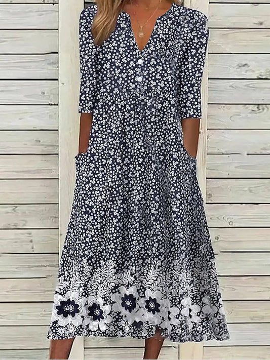 Casual Short Sleeve St Patricks Day Woven V Neck Floral Midi Dress NNq20