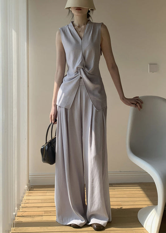 Neck Button Sleeveless Solid Vest Grey V Women Knit