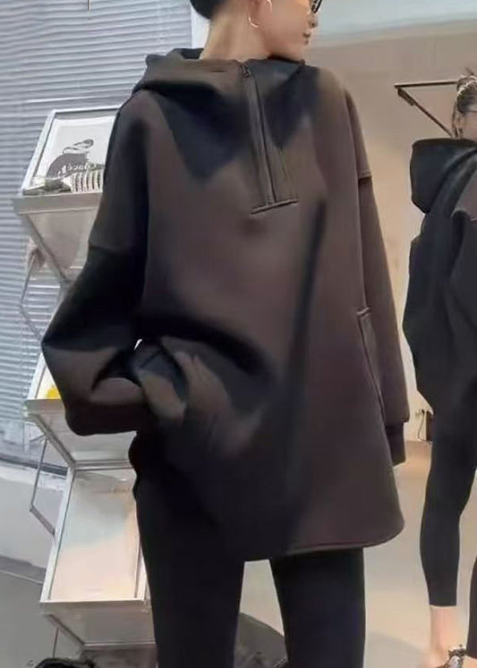 Loose Spring Zippered Hooded Cotton Sweatshirts Grey