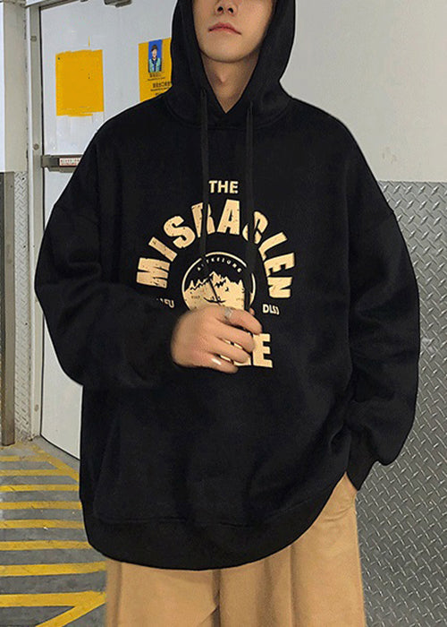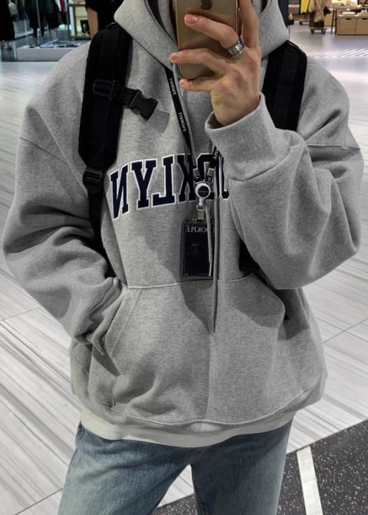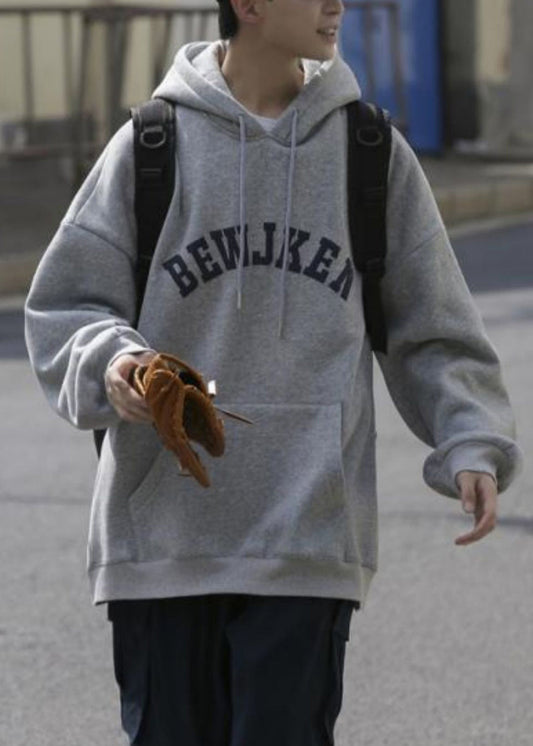 Classy Grey Hooded Letter Warm Fleece Mens Sweatshirts Spring YQ023