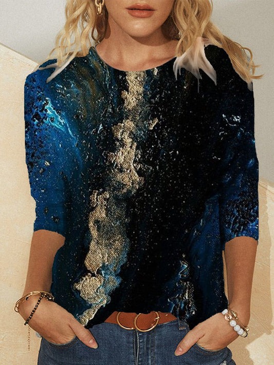 Women's Printed Long Sleeve Crew Neck Casual T-shirt AT100119