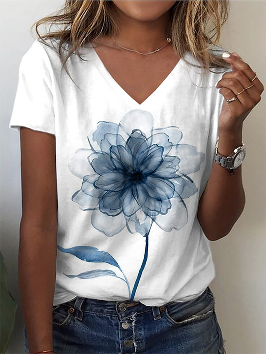V neck Floral Casual Short Sleeve T-Shirt MMq14