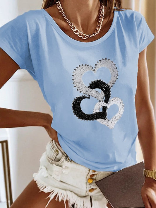 Heart/Cordate Loose Crew Neck Casual T-Shirt AH087