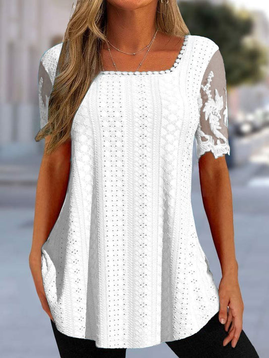 Square Neck Simple Lace Plain T-Shirt mm255