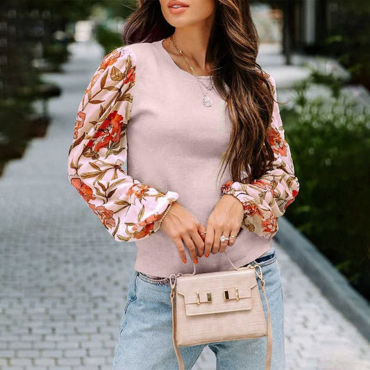 Long-Sleeve Floral Panel Knit Top CA26