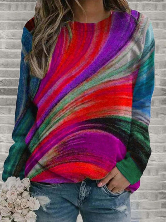 Crew Neck Vintage Long Sleeve Tunic Top QAL41
