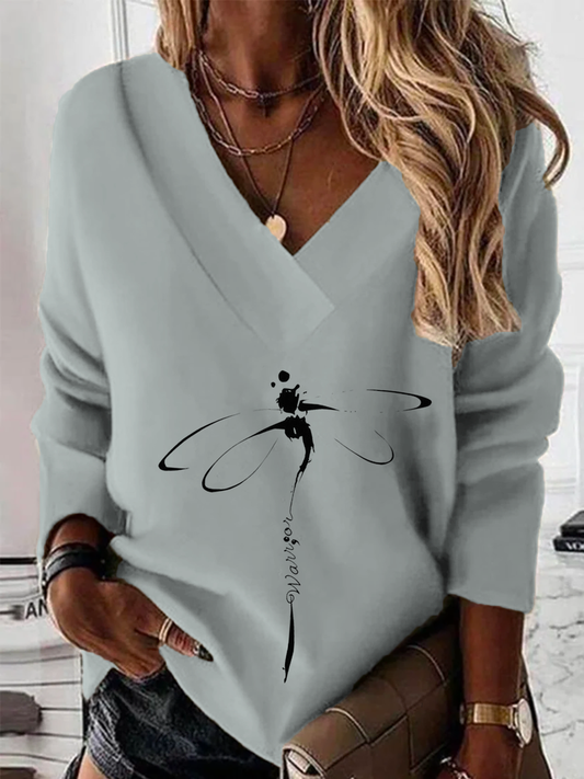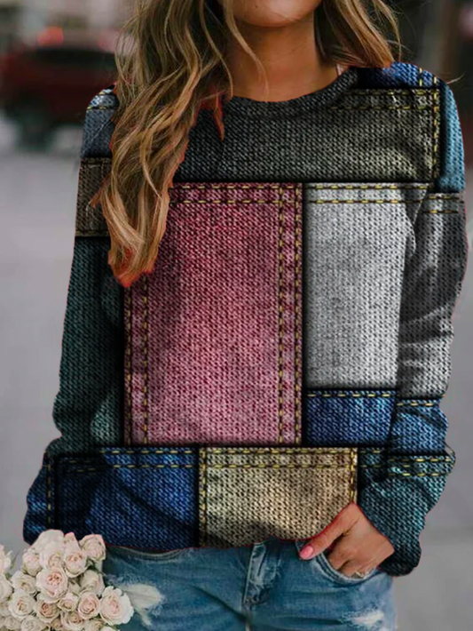Casual Long Sleeve Round Neck Printed Top Sweatshirt QAS45