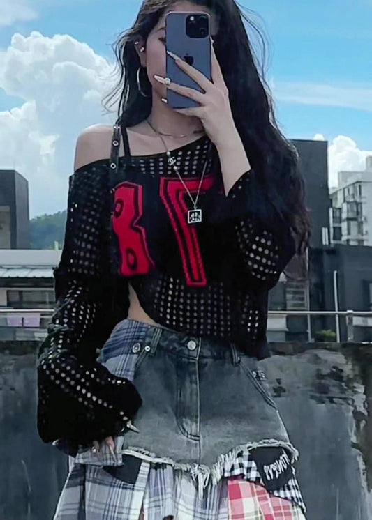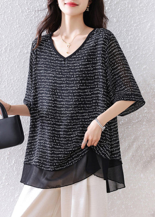 Patchwork Black Oversized Summer Tops Bohemian Chiffon