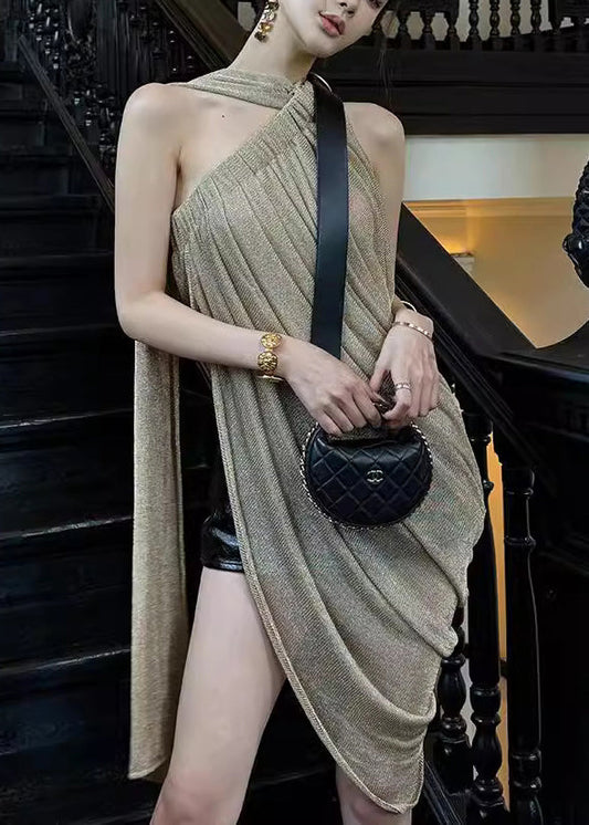 Spring Tulle Sexy Purple Top Neck Wrinkled Slash