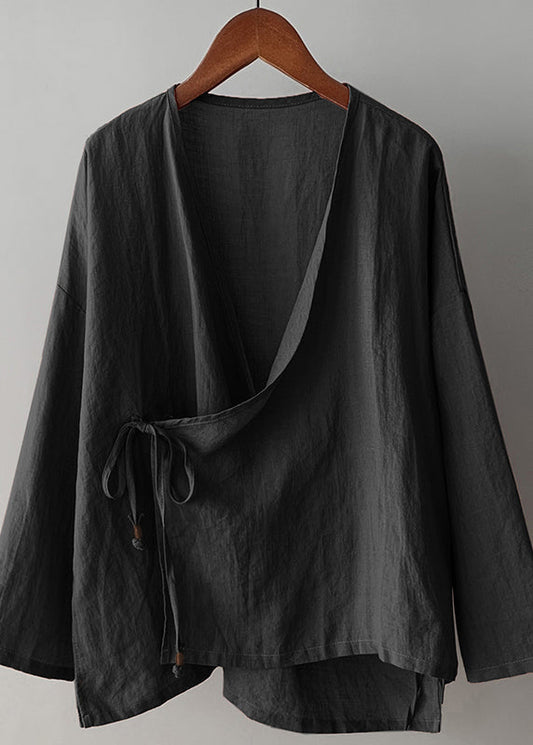 Plus Size Khaki Oriental Button Cotton Shirt Top Spring TI031
