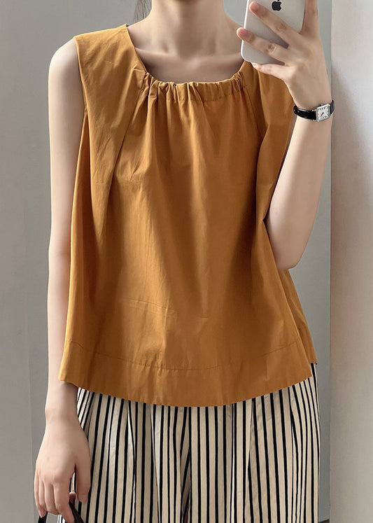Women Orange Wrinkled Solid Cotton Top Sleeveless QE034