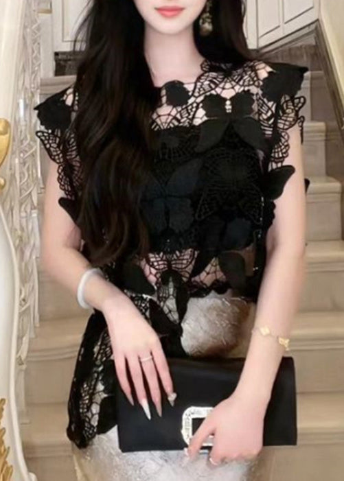 Bohemian Rose Butterfly Hollow Out Lace Tops Sleeveless QP028