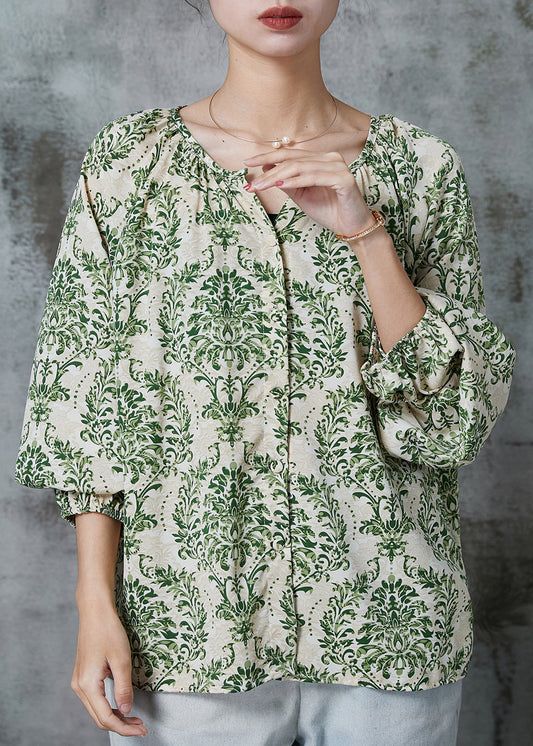 Stylish Green Oversized Print Chiffon Shirt Top Spring AL1016