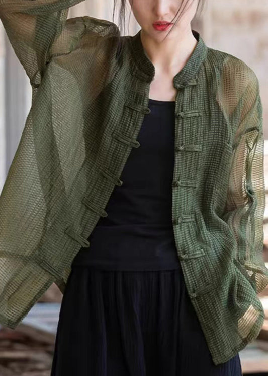 Vintage Blackish Green Print Button Hooded Top Summer AP031