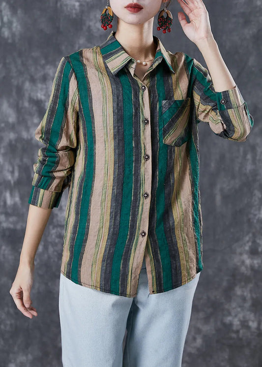 Peter Pan Collar Striped Linen Shirt Top Fall