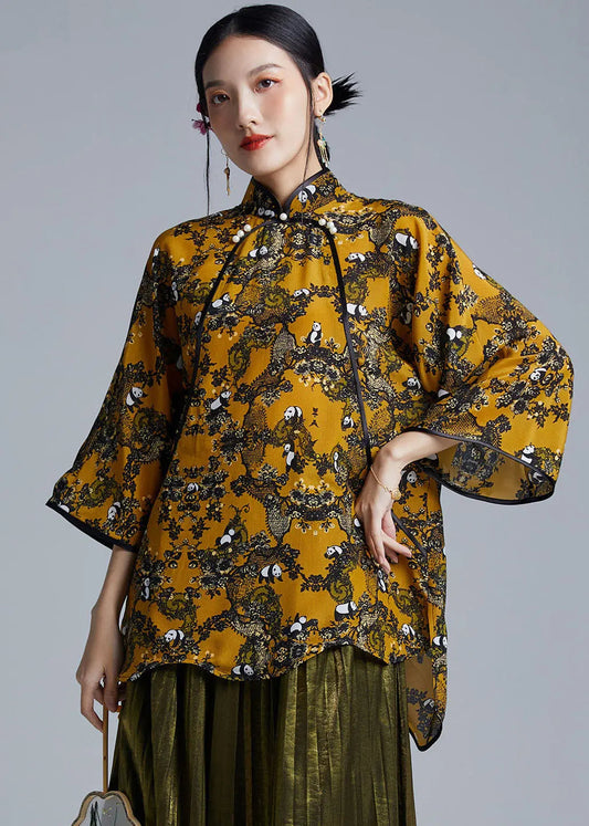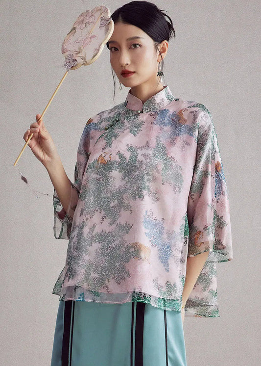 Print Tulle Blouse Tops Exra Large Hem Flare Sleeve