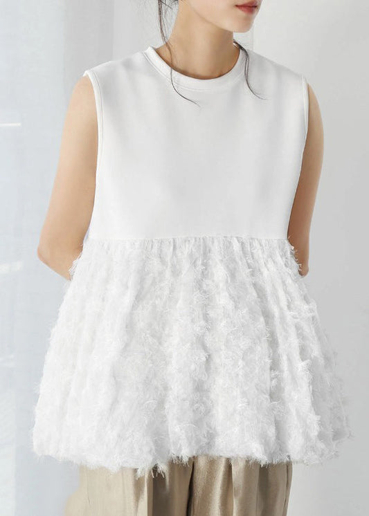 Sleeveless Fashion Cotton Patchwork White Tops Tasseled