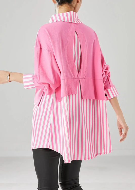 Pink Patchwork Striped Cotton Sweatshirts Top
