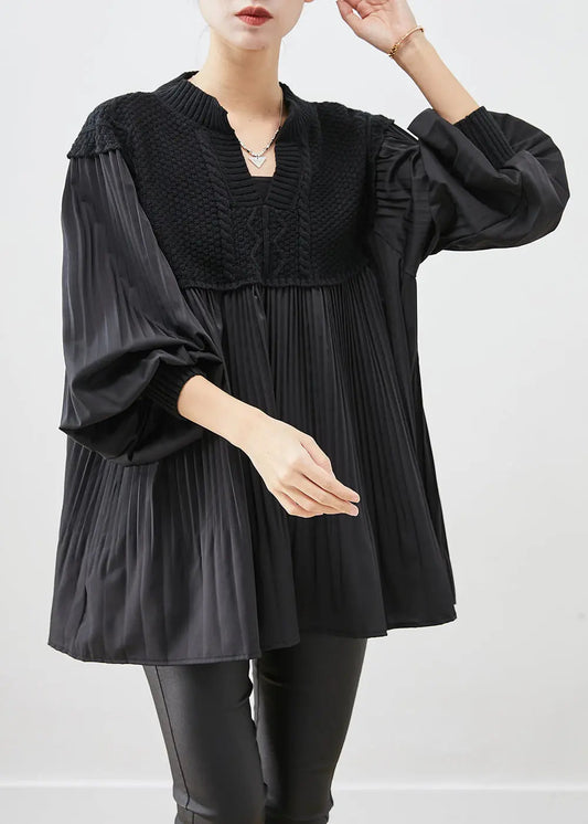 New Khaki Peter Pan Collar Button Patchwork Knit Shirt Tops Fall TU058