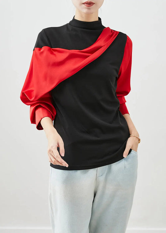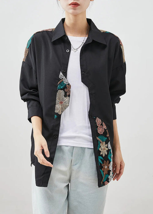 Patchwork Print Cotton Batwing Sleeve Blouses